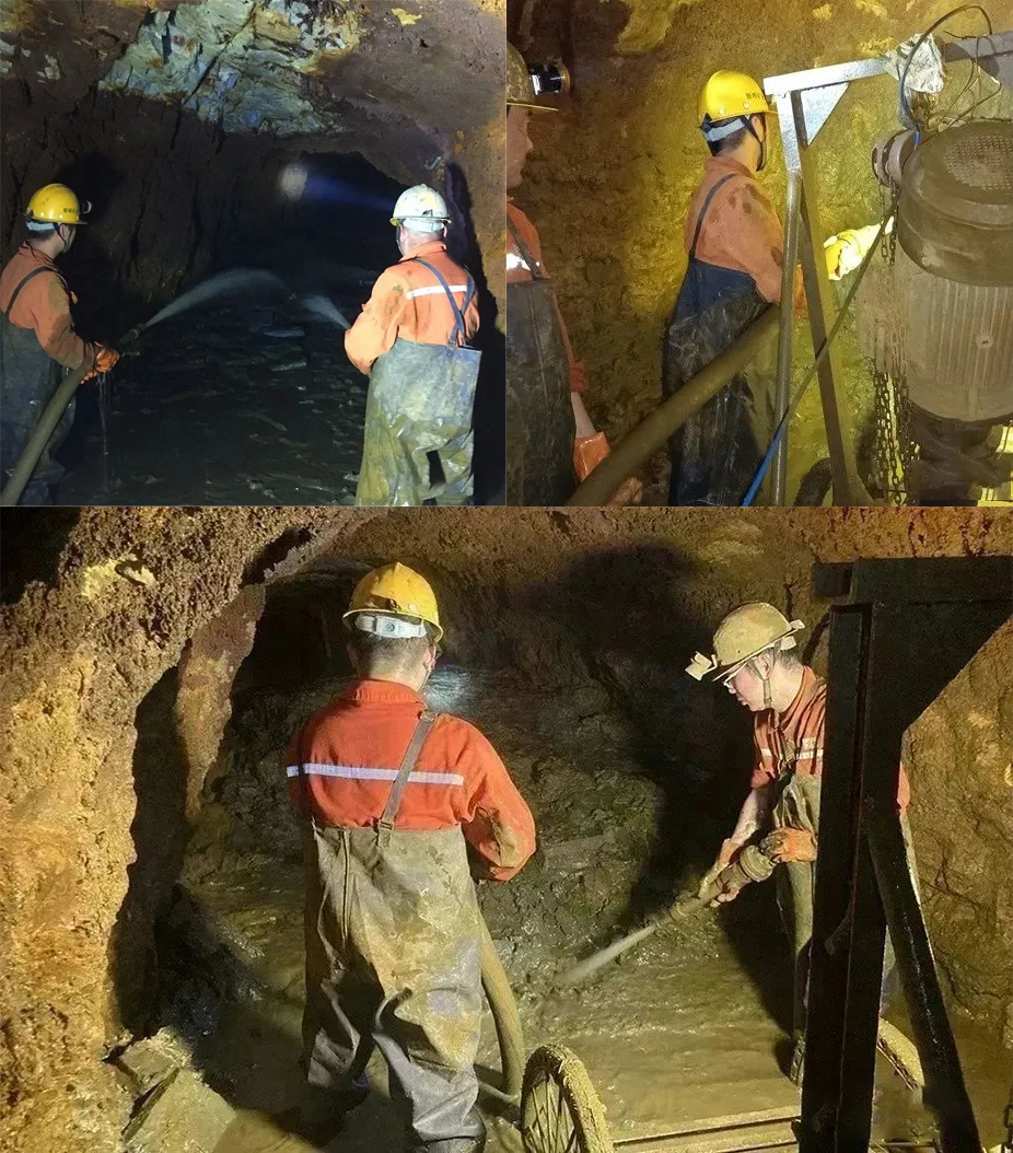 沉寂多年的水倉(cāng)內(nèi)不僅有淤泥、雜物,還伴有大量矸石、枕木等物,清理起來(lái)談何容易!分班不分責(zé),分工沒(méi)分家。拆分后的兩個(gè)小班不畏勞苦,每天“泥巴裹滿(mǎn)靴褲、汗水濕透衣背”,8小時(shí)滿(mǎn)負(fù)清淤。全員16人在泥水里摸爬滾打六天十二個(gè)班次,-270m水倉(cāng)清理任務(wù)完美收官,清淤距離逾160米,清理淤泥量超900m3。
